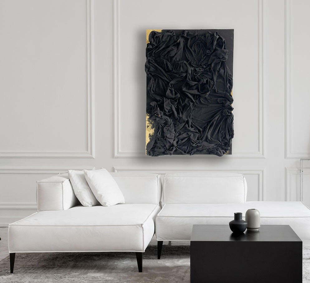 Paddy, this latest multimedia, multi-dimensional abstract piece you’ve titled “Tuxedo” is incredibly fantastic. The rich, minimalistic simplicity of the aesthetic, combined with the fascinating complexity of the abstract form make this a treat for at least two of the senses.Q: Your constantly intriguing choice of subject and medium is so incredible, I have to ask right away, What inspired the creation of this piece, and also the sophisticated title, were there any specific themes or messages you intended to convey through this piece.?A: In my painting titled "Tuxedo," I combine two primary mediums: black fabric and gold guild. The gold symbolizes a boundary of universal acceptance, containing the undulating fabric of chaos.Q: Can you talk about the experience with your creative process for this piece? How do you see this artwork in terms of your larger body of work, could this be a new direction, or is this experimental? And also, please talk about any challenges you encountered during the creation of this artwork, and how you worked through them to create such a stunning final product.A: Throughout the preceding year, I have encountered various challenges and triumphs, each leaving its mark on my work. Presently, I find myself situated in a different space, both personally and creatively. My most recent creation, titled "Tuxedo," serves as a return to a state of tranquility, characterized by the deliberate and minimalist incorporation of two distinct materials.Q: Can you talk about the techniques or mediums you used to bring this artwork to life, you don’t have to give any secrets away, maybe just in terms of experiences with new materials, new techniques that were exciting (or terrifying) to utilize?A: My work is an endless experiment. I like using materials that normally don't work together. I break the rules and it always ends up with something exciting.Q: How do you imagine viewers will interpret, or engage with, this artwork? Is there a particular space you imagined this piece inhabiting while creating it?A: My work is deeply personal, and I aim to share it with others, allowing them to interpret it in their own unique way.Q: Are there any new related works on the horizon for you? Either way, please let the readers know how they can stay in touch with you, and of course, how they could collect this piece for their own art collection.A: I am currently working on numerous projects within my studio, including sketches, paintings, and experimentation with various materials. I am excited to share my new creations with you.For updates and insights into my creative process, please consider following me on Instagram @paddycohn_art.You contact me through my website www.paddycohn.com for pricing and details. Thank you for giving me the opportunity to share my story.